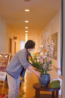 施設の中は、暖かく今月も素敵な生け花で