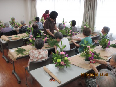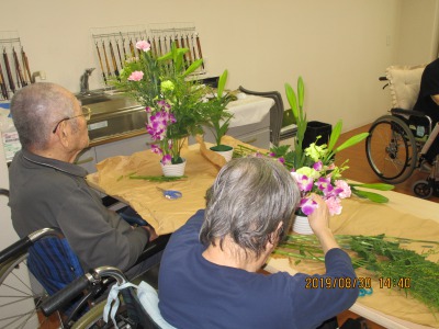 認知症の入居者様がとても落ち着かれ「これ、私が活けたのよ」と