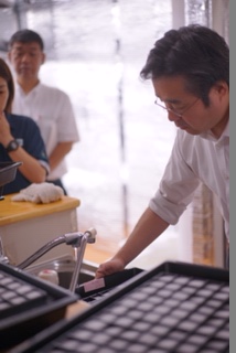 今日は、水耕栽培の記念播種を行いました。