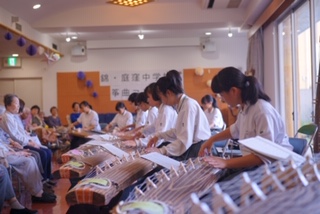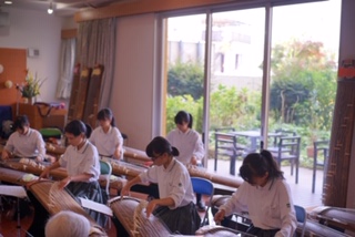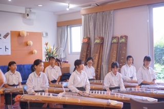 今日は、錦中学・庭窪中学校の生徒さんが琴の演奏会を