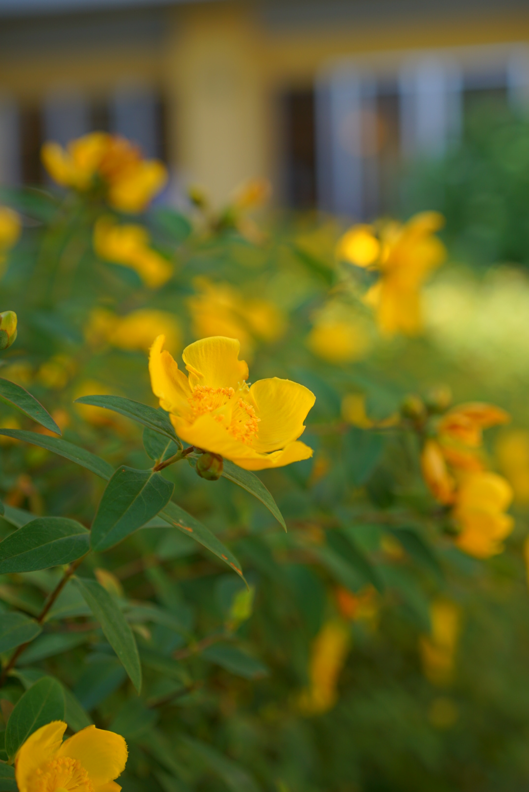 中庭で仲睦まじく