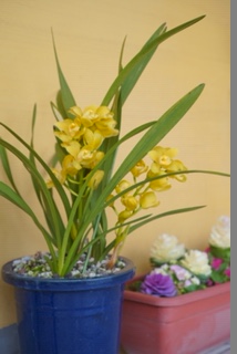早速 玄関先にシンビジウムを置いてくださりました。