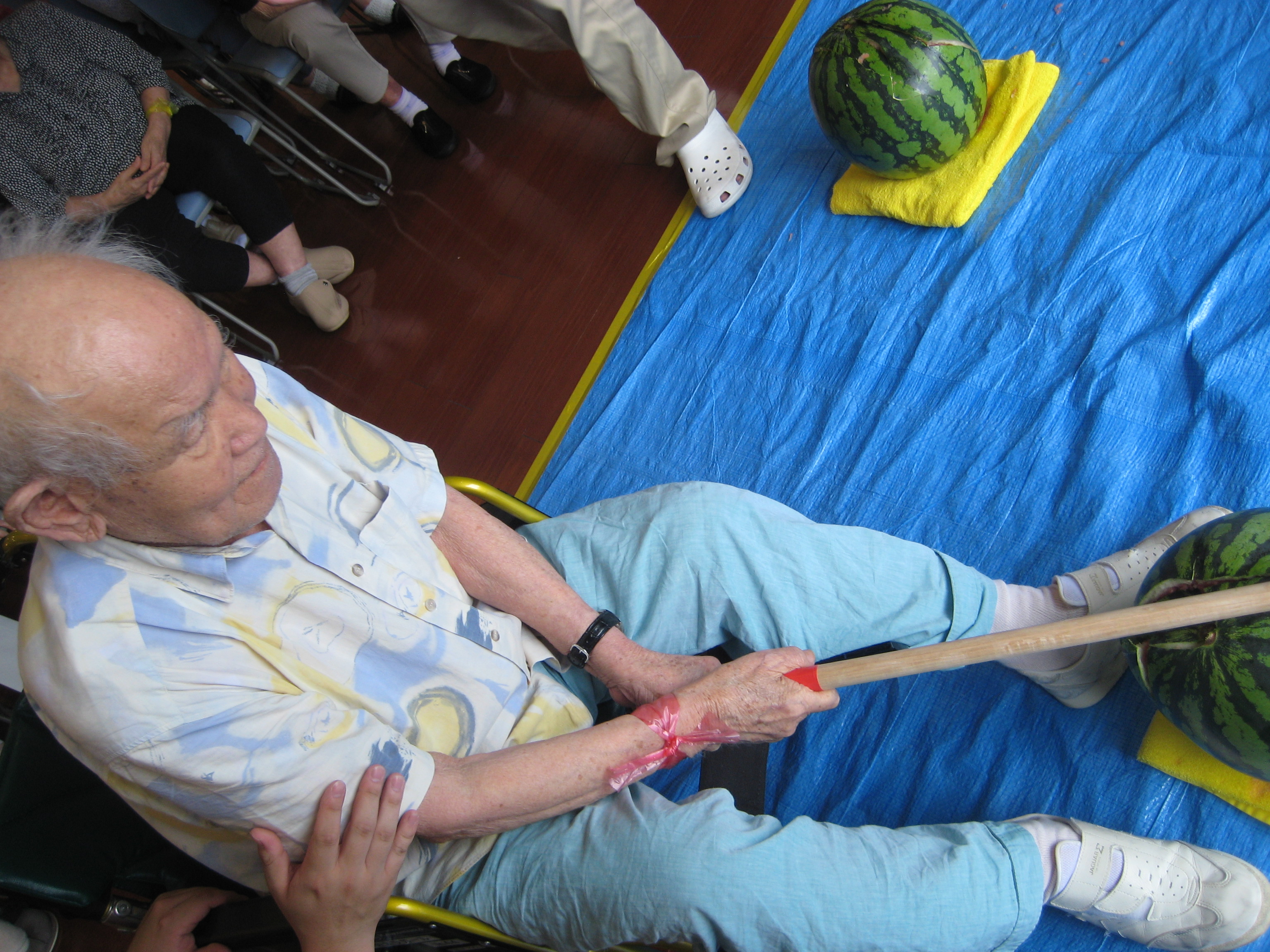今日は、スイカ割大会をしました。