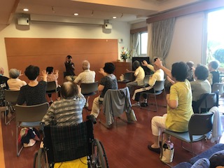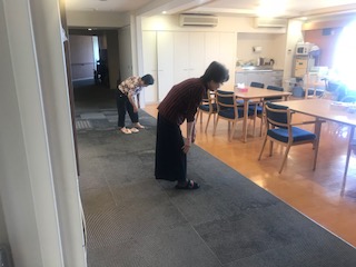 地域交流ロビー室で体操をしたあと
