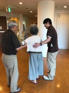 そっと優しく手をそえたり、お話を聞いたり、対応しています。