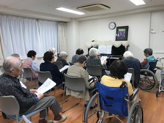 入居者様が、ピアノを弾かれ歌の練習を行っています。