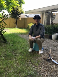 施設の中庭は、草も青々と茂っており、職員で草むしりに励んでいます。
