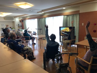 施設では、フロアーで理学療法士指導のもと入居者様が