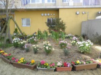 中庭にお花を植えました。