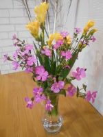 今朝、厨房の職員さんよりお花をいただいたのでホールに飾らせていただいたのですが…