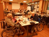 9月25日(水)夕食は月に一度のイベント食を開催しました。今月は脂ののった鯖を使って焼きさば寿司です。「店で売ってるのよりおいしいわ。」「おなかいっぱい。」「お酒を飲むのは月に一度じゃから、おいしいわ。」みなさん大満足の笑顔を浮かべれていました。来月も期待にお応えしますよ!!
