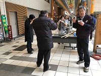 今日は、元魚町の町内の方と一緒におもちつきをしました。