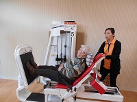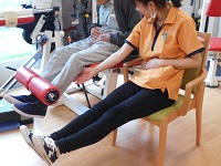 こちらのマシーンは、起立・着席動作を改善し、膝関節を伸ばす機能を改善します。