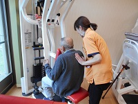 パワーリハビリの体験をしていただき、「運動ができてええな。」と笑顔をみせてくださいました(^^)