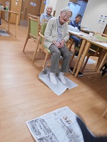 また、日中のレクリエーションでは新聞たぐり寄せをしてみました。
