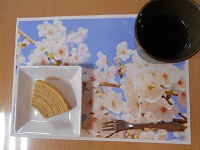 今回は、春の訪れを視覚で感じて頂こうと、桜の色紙をご用意させていただき色紙の上にみたらし団子