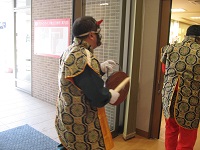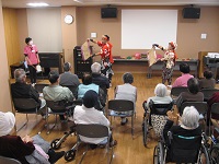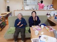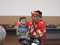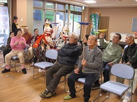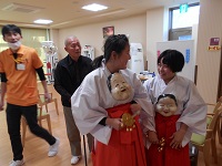 おたふくさんの「招福万来」の唱えに、ベッドで休まれているご利用者様も思わず目を開けられ喜ばれていました♪