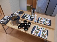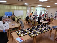 ご利用者様にお好きな具材を巻いていただき、他に天ぷら・煮しめ・すまし汁・デザートにプチケーキをご用意いたしました。