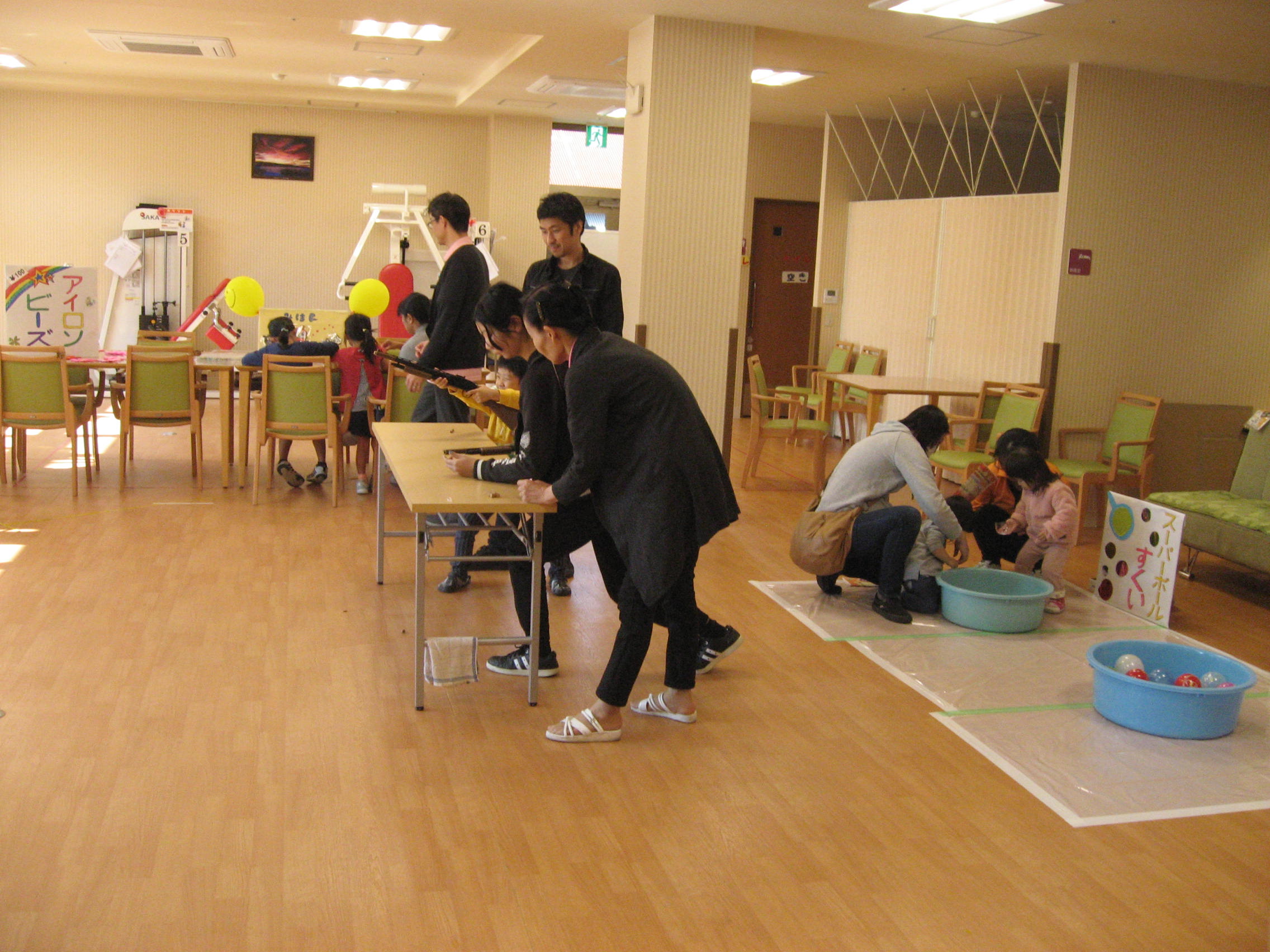 ゲームコーナーでは、アイロンビーズで小物を作ったり、射的、ヨーヨーつり、スーパーボールすくいを