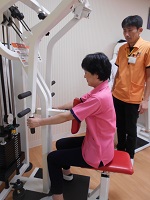 こちらのマシーンは、前に伸ばした手を後ろに引く運動を行います。