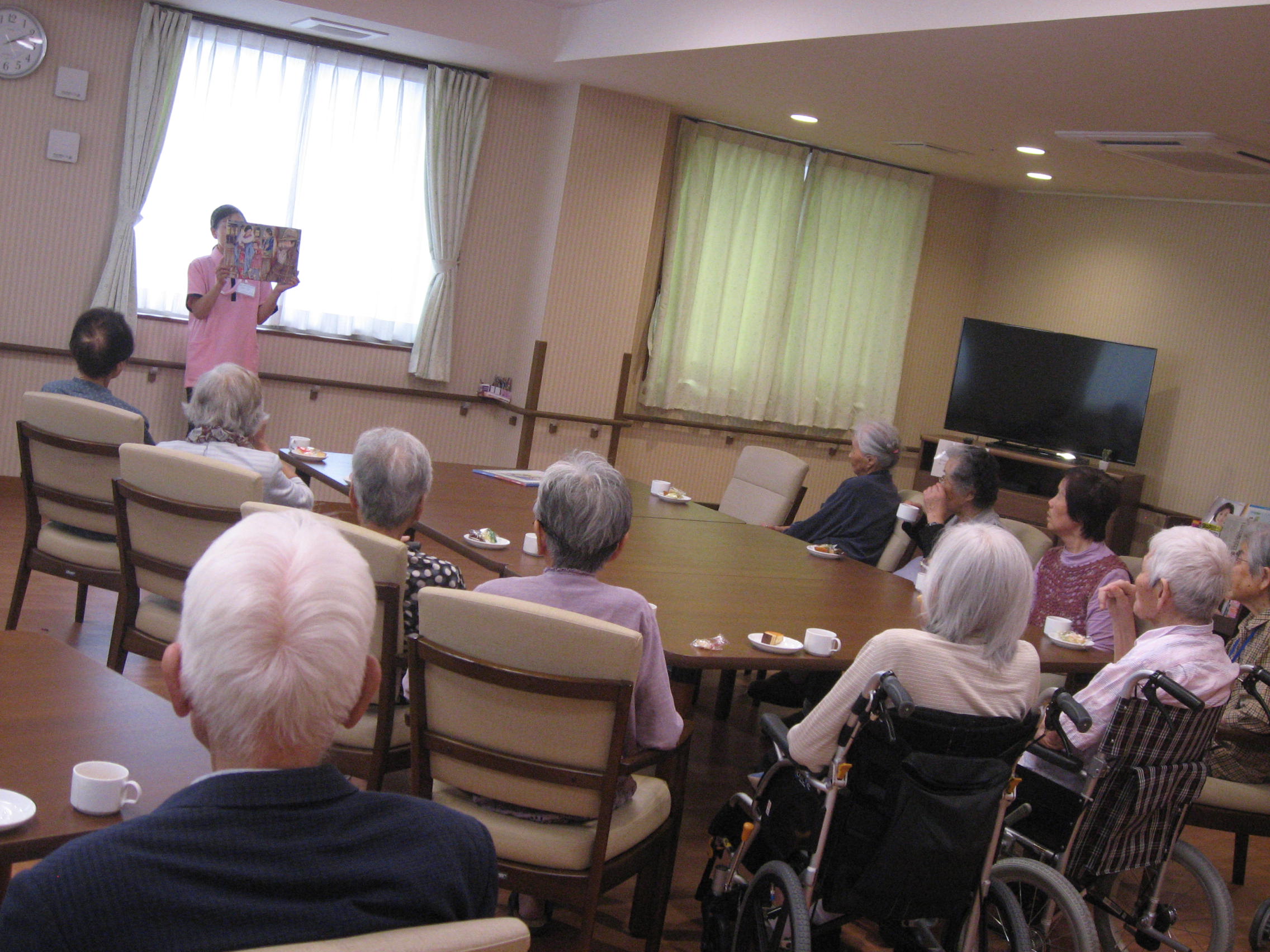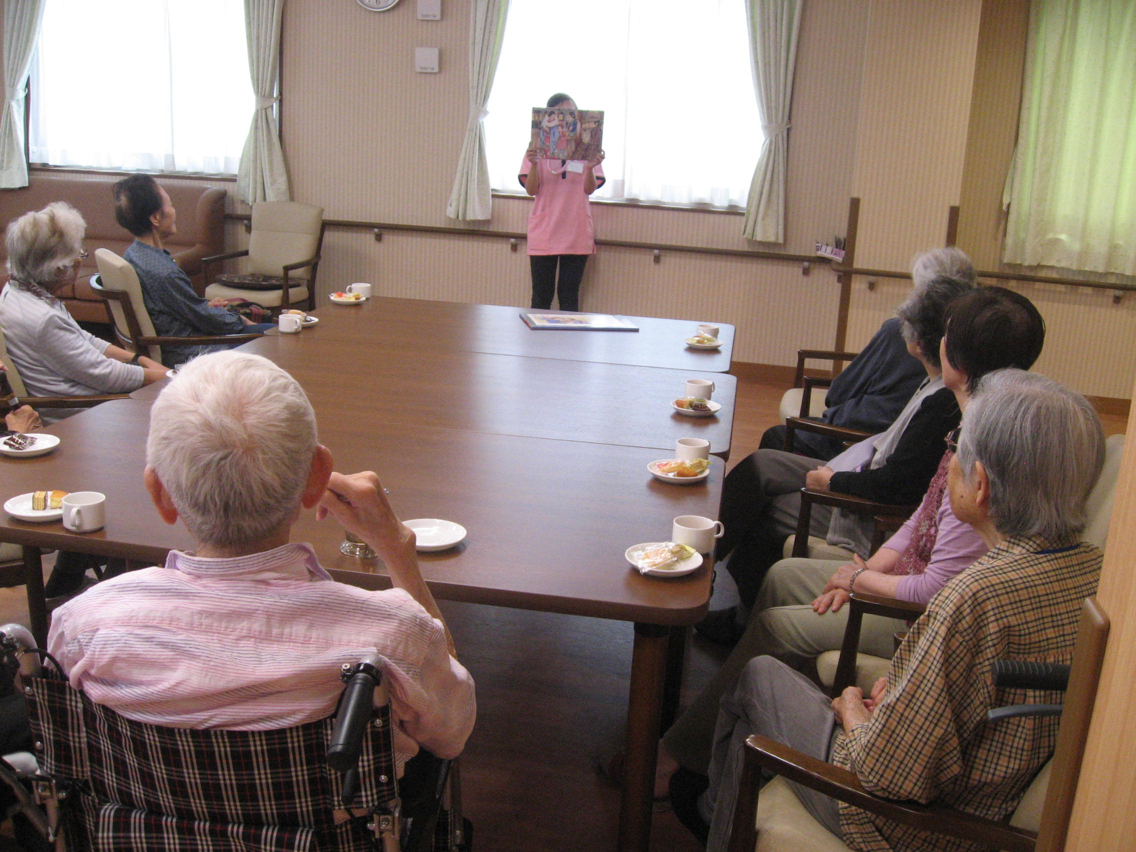 ♡誕生日会は、ほぼ毎月あり、コーヒーとケーキを提供してお祝いをしています。(#^.^#)