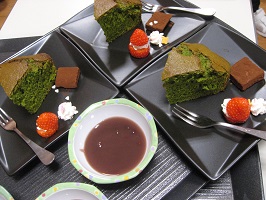 今月のケーキは抹茶ケーキでした。