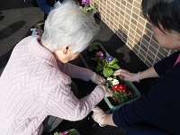 先日は、ご入居者の皆様とプランターにお花を植えました。