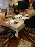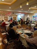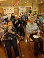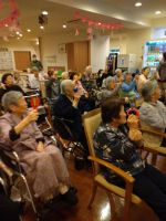 今日の話題は昨日東京で🌸の開花発表があった桜でした。桜にちなんだ歌を唄い、その後はハンドベル、鳴子、鈴を持って身体も動かしながら楽しく歌っていました。楽しい時間はあっという間に過ぎてしまいますが笑顔いっぱいの音楽療法でした(^^♪