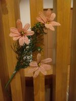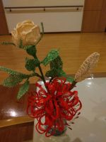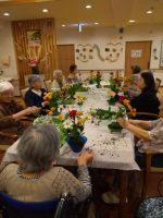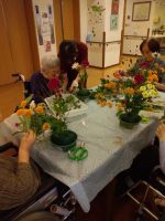 水引で作ったもので先生についたそうですが秋桜、薔薇🌹、彼岸花も上手にできています。早速、飾らせていただきました。今、彼岸花が満開で私も通勤途中に眺めるのですが本物そっくりです。ご入居者様は飾ってくれた事に喜ばれていましたがこちらもこそ(人”▽`)ありがとう☆ございますという気持ちです。