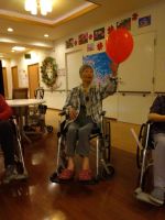 事務所で膨らましている時に3つ割れて、何故か施設長が膨らませると割れるんですよ。今日も少し加減したそうなんですが( ´艸`)