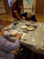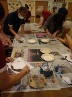 可愛いお魚🐡のプレート作りに挑戦です。最初に魚の型を作り、深みをつけて、呉須で魚の模様をつけていきます。可愛いお魚の模様が完成しました。焼き上がりが楽しみです。