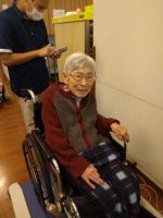 車椅子の自走の練習をされているK様には「赤い飾りをキャッチするまで頑張って」と伝える機能訓練指導員!頑張って自走しキャッチした時に素敵な笑顔を見せてくださいました((´∀`))