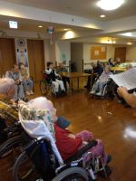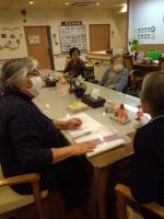 今回は12月ということで師走には皆様は何をしていましたか?の質問から始まり、「大掃除」「買い出し」「年越しそばの準備」「おせちの準備」「門松」と沢山出ました。今は簡単に買えますがご入居者様達の頃は手作りが多かったと感じました。最後はクリスマスソングを歌って終了となりました🎄(^^♪