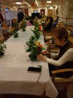 オレンジのガーベラが大きくてグラデーションにもなっていて皆様、メインに活けていらっしゃいました。娘様が丁度面会に来られて一緒に活けられて楽しそうでした。お二人共お花が大好きでいつも玄関のお花を一緒に眺められています。お花は癒されますね。