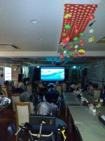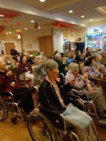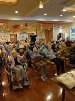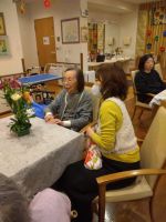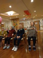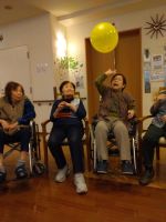 本当は先週でしたが電車の遅れで先生が来れず今週になりました。皆様、首を長~くしてお待ちしていました。回想法を取り入れたり鳴子を使ったり身体を動かしたりとたっぷりと一時間楽しめたようです。皆様のお顔(^^)/が生き生きとしていました。