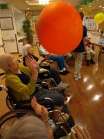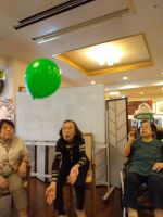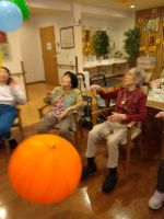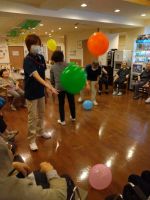 軽やかな音楽に合わせてスタートです。頭を超えた風船を取りに行こうとしたスタッフ、その風船が壁にぶつかり戻ってきたのをご入居者様が打ち見事にスタッフの顔面に直撃(*_*)焦るご入居者様😲笑う皆様( ´艸`)今日もハプニング、笑いありの楽しい🎈バレーでした。