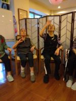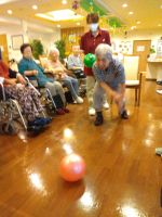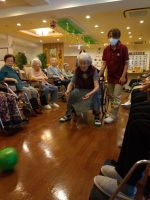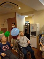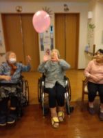 「今日、風船いくつにしますか?」「え~いつもの五つじゃないの?」とスタッフと皆様の会話から始まりました。やはり多い方が嬉しいようです。中央のスタッフは今日も奮闘し風船が割れてもすぐに追加し最後まで五つの🎈で楽しまれました。水分補給をしながら「今日はぐっすり眠れる」と笑顔のH様!本当に風船バレーがお好きで夢の中でも風船を打っているのかな・・・(^^♪
