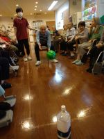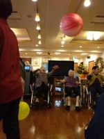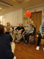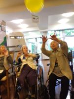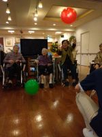 5つの風船が活躍して色々な所へ飛んでいきました。今日で参加2回目のご入居者様は「こんなに楽しく身体を動かせて嬉しいわ」と仰っていました。「リハビリ効果もあるからこれからも参加してくださいね」とお伝えして「勿論よ」と笑っていました( ´艸`)