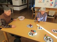 寒い日が続きますね(´;ω;`) そんな時は元気に身体を動かし温まろうという事で風船バレーやお手玉競技をして過ごされています。負けず嫌いなご利用者(^^;) 白熱な試合が繰り広げられています(;・∀・)