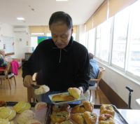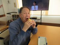 1月のおやつレクはフルーツサンドを作りました!! スポンジにたっぷりの生クリームとフルーツを挟んで出来上がり!(^^)! お味の感想は… ご利用者の顔を見るともうわかりますよね( *´艸`)