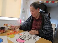 来月の壁画製作の様子です。皆様器用に色塗りをされています♪ さてさてどんな壁画が出来上がるのでしょうか( *´艸`)