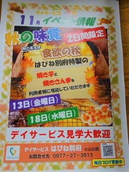 焼き芋とさんまを利用者様に美味しく召し上がっていただきます。