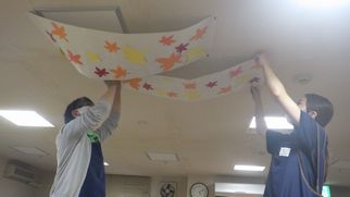 紅葉が綺麗な時期となり、デイサービスも紅葉の飾り付けを行いました。