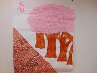 細かくちぎった桜色、茶色をちぎり絵にしてふんわり