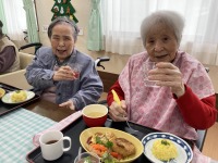 職員の「今年1年お世話になりました!来年も元気に過ごしましょう!」の挨拶の後に皆さんで乾杯をしました。
