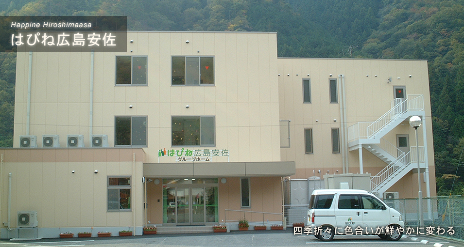 四季折々に色合いが鮮やかに変わる山合いに立地し、隣には大田川の清流が流れる自然の中で落ち着き、のびのびと生活できるホームとなっておりますので是非、お気軽にはぴね広島安佐にお越し下さい。