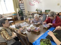 今日は春分の日(彼岸の中日)、桜の花も開花し、春らしい季節を迎え、家族様と外出される方や、面会に訪れられた家族様と居室で過ごされる方、またリビングで紙細工などを楽しまれました。おやつには彼岸の牡丹餅を召し上がって頂きながら午後のひと時を過ごしていただきました(^_-)-☆