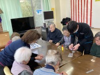 3月18日、2階フロアにて認知症カフェが開催されました。今日は可愛いフクロウのマスコット作りに挑戦です!