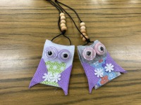 目や羽などのパーツをつけ可愛いフクロウが出来上がりました(*’▽’)器用に糸にビーズを通されている方も・・・✌
