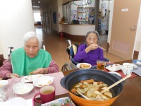 29日、三階のご利用者様スタフ全員でこの一年を振り返り、飲んで食べて和気あいあいと鍋忘年会をしました、ついた餅の出番はなく、当日は、スタッフの持ち寄った新鮮野菜&猪肉、に舌ずつみを打ちながら、来る年がご利用者様全員健康で過ごされることを願っての忘年会でした。よいお年をお迎えください・・・(^▼^)